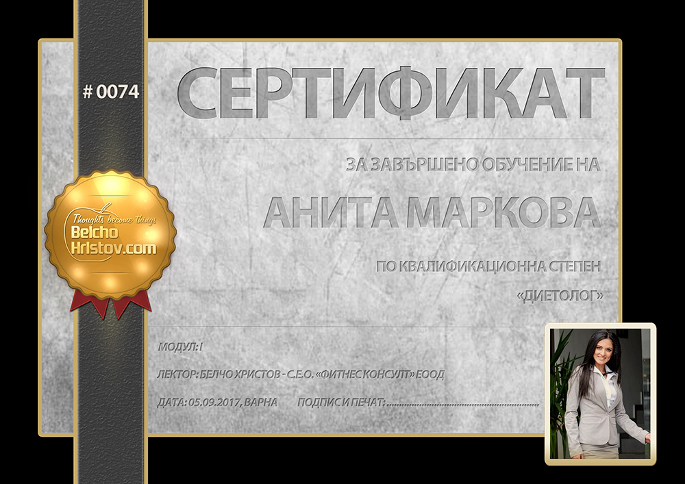 Бързам да споделя един от вече получените коментари. Държа да ви запозная с Анита Марков – успешно завършила модула „Специалист по клетъчно хранене – диетолог“: