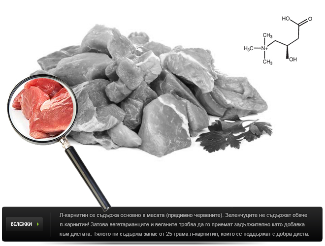 Л-Карнитинът е азотна съставка намираща се в скелетните мускули, сърцето, черния дроб и бъбреците ни. Средното количество Л-карнитин в човешкото тяло е около 20-25 грама, 95% от които в скелетните мускули. Съставката в натурален вид се съдържа се в червеното, птичето месо, рибата и някои млечни продукти. Храните от животински произход са значително по-богати на Л-карнитин от тези от растителен. Карнитина съществува в две форми Л и Д форма, като Л формата е физиологически активната.