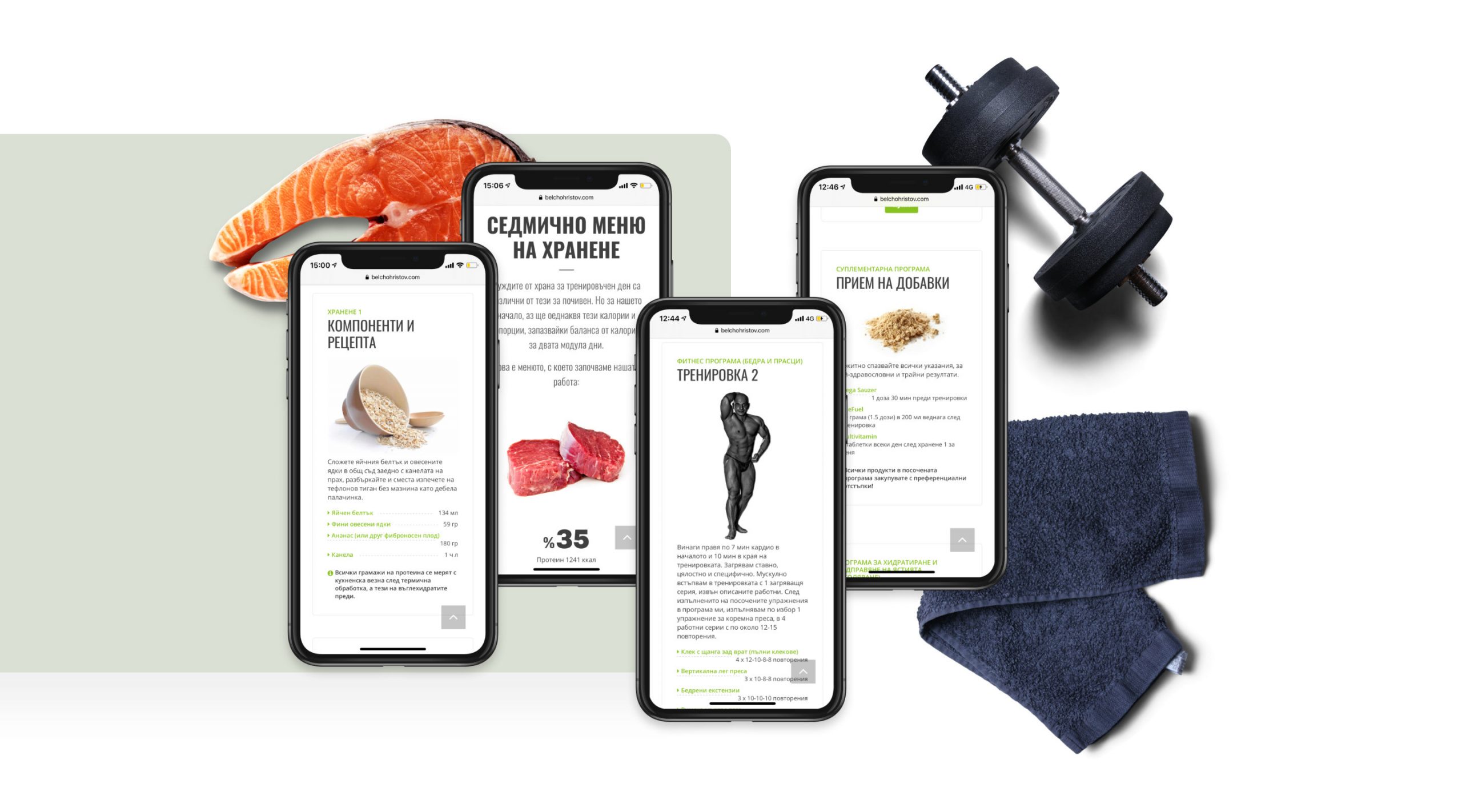Ще притежаваш собствен профил в сайта и 3 прекрасни индивидуално създадени за теб програми. Ще проследяваме процеса със снимки, ще следим разликите в кг и см, ще правим одити и анализи с ТЕБ, ще следим медицинските показатели и т.н.